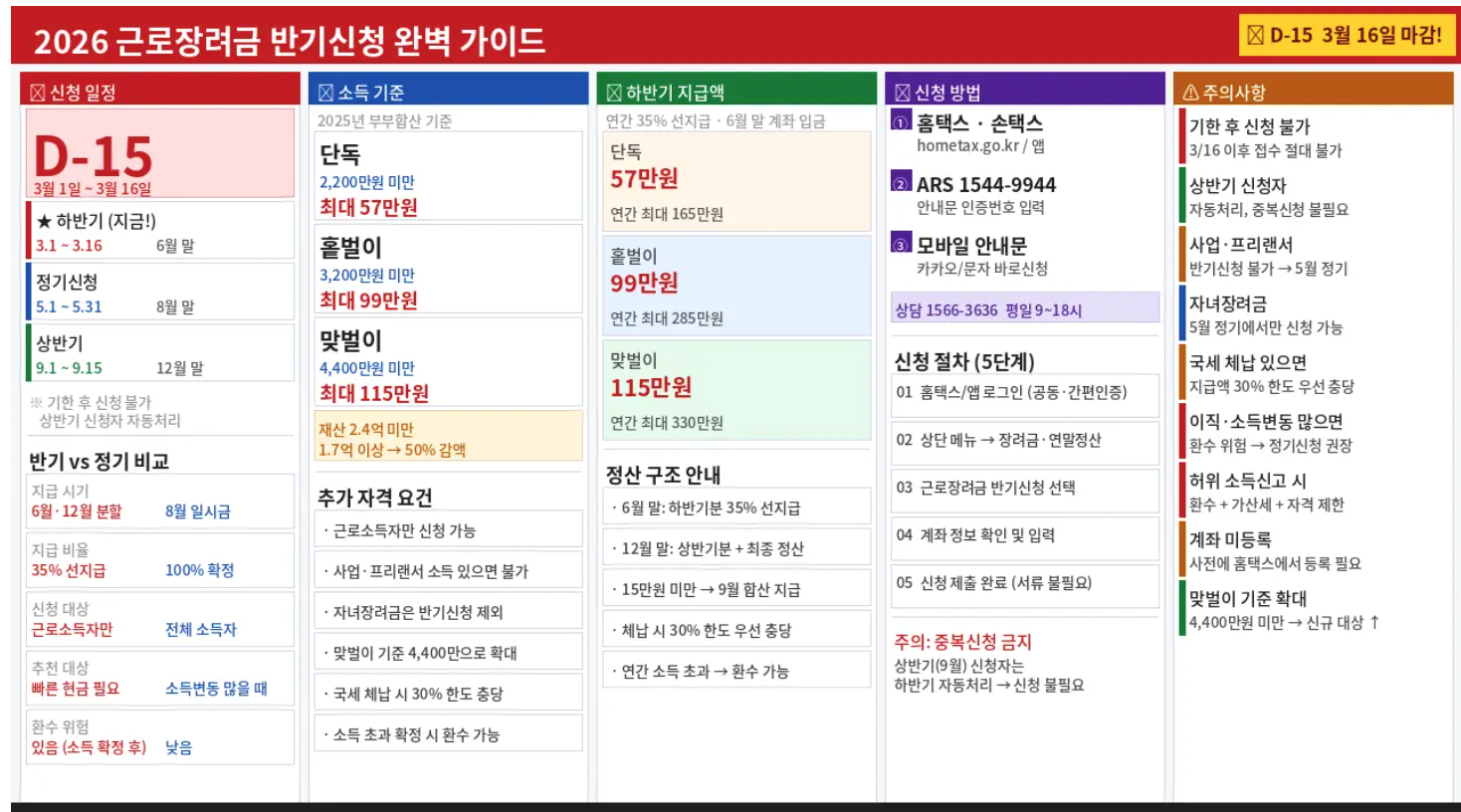 - 홈택스 확인 : 국세청 홈택스 로그인 후 근로장려금 메뉴에서 확인.